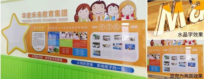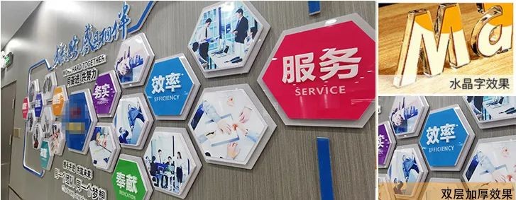 工藝:在豪華工藝的基礎(chǔ)上,根據客戶需要製作多層加厚效果,大字部分做水晶字,並附加油畫布、LED發光字等多種(zhǒng)材(cái)質(zhì),提升(shēng)質感(gǎn)與特色。