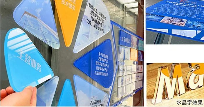 優勢:多層立體堆疊、玻璃光澤。 水晶廣告UV工藝—整體亞克力板製作