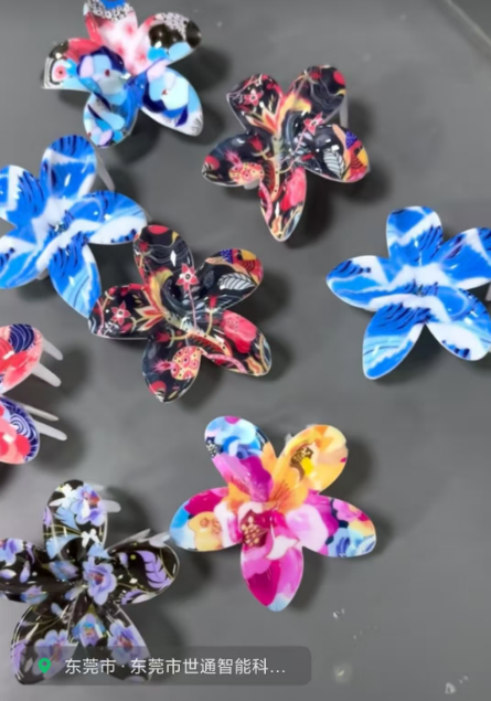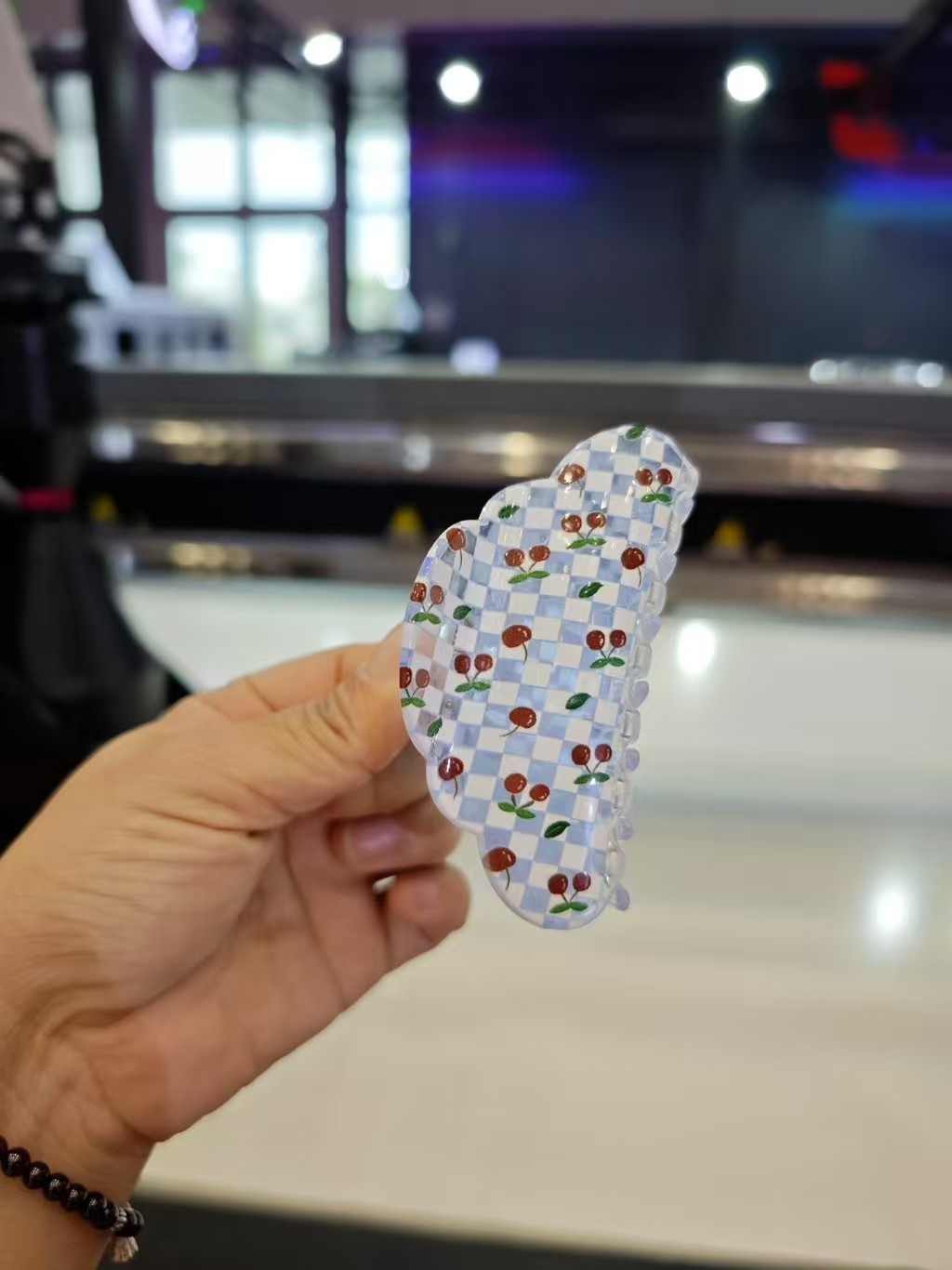 材質突破:UV打印技術實現多(duō)種材質覆蓋,發夾常用的亞克力(lì)、金屬、塑料等材料都能完美適配。